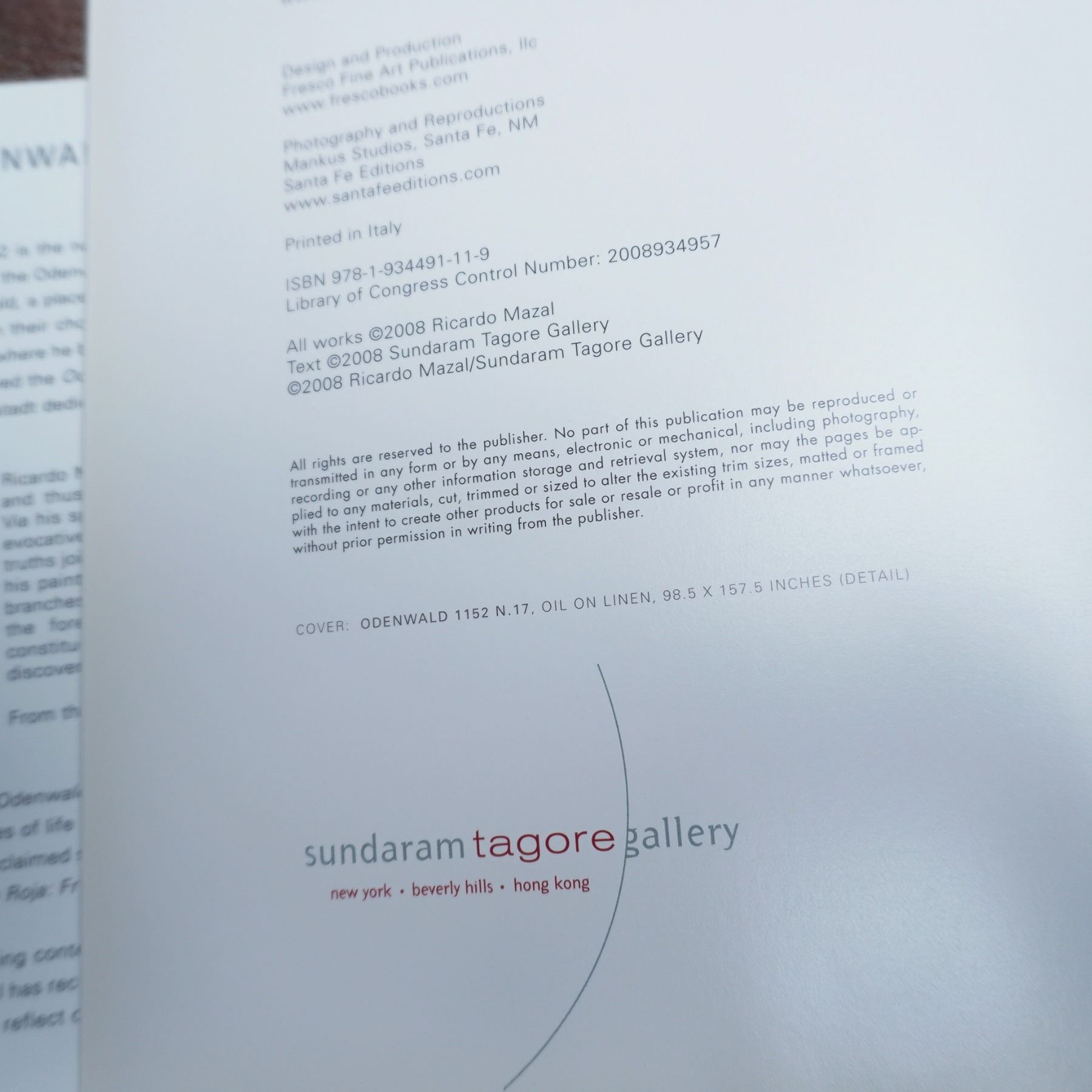 New York: Sundaram Tagore Gallery, 2008. A monograph featuring the works of Ricardo Mazal, exploring the Odenwald 1152 series through abstract compositions. Hardcover edition with high-quality reproductions and critical essays. ISBN: 978-1-934491-11-9.