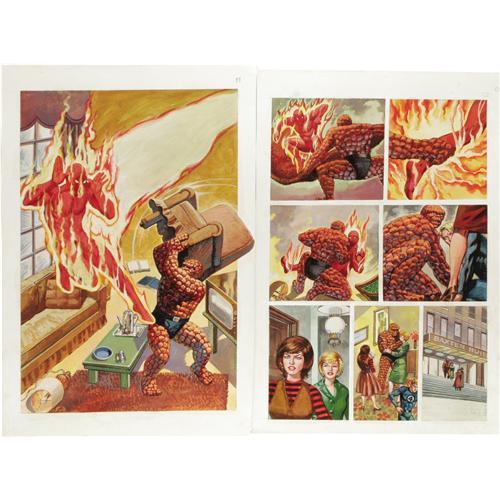 <B>Ricardo Villagran - Strange Tales #1, Human Torch and Thing Page Original Art, Group of 2 (Marvel, 1994).</B></I> The Human Torch and the Thing mix it up just like they used to in the swinging sixties in pages 13 and 14 of this Strange Tales one-shot. Boys will be boys. Each painted page has an image area that measures 11.5" x 17", and the art is in Excellent condition.<BR><BR><b>Shipping:</b> Flat Material, Small (<a target="_blank" href="http://www.heritageauctions.com/common/shipping.php">view shipping information</a>)