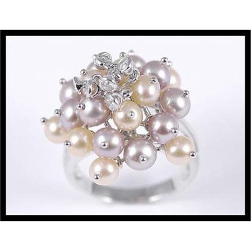 Rich ring with pearls and 6 diamonds that weigh 0.20 carats set in 18K white gold. The size 7 ring measures 22.5 millimeters (0.89 inches) wide x 22.6 millimeters (0.89 inches) high and weighs 7.00 grams total weight.