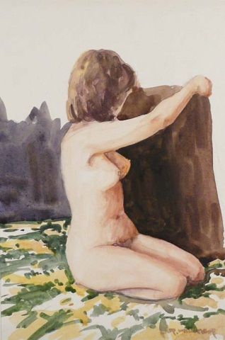 Rich Hilker, Watercolor (2395) Rich Hilker, Watercolor, Nude, 14" x 9 1/2", Signed Lower Right
