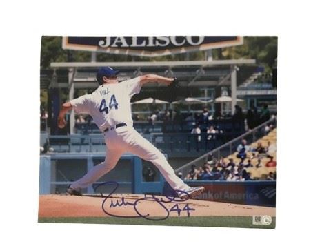 Rich Hill #44 on the Dodgers autographed colored photo. Features a sticker of authenticity. Hill was a Dodger from 2016 to 2019. Although he was past his prime, the southpaw provided the Dodgers with leadership and toughness. He was a big part of their two World Series appearances in 2017 and 2018 during that time frame. 8”x10”.