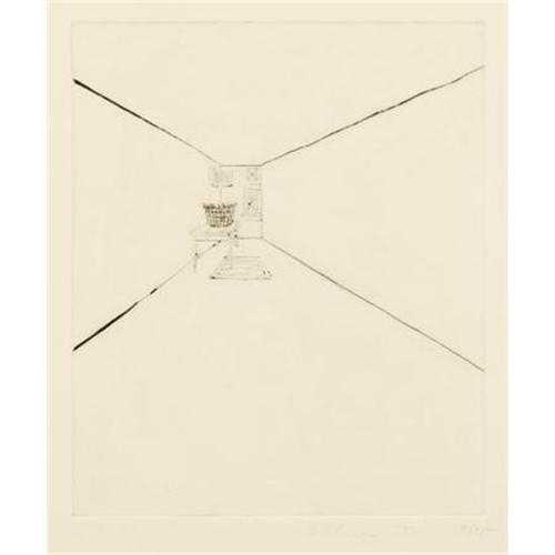 <B>RICHARD ARTSCHWAGER </B></I>(American b. 1923)<BR><I>Interior #3</B></I>, 1977<BR>Drypoint <BR>11-7/8 x 9-7/8 inches (30.2 x 25.1 cm)<BR>Signed, dated, and numbered lower right in pencil: <I>Artschwager '77 29/35</B></I><BR> Blind stamped lower left: <I>Multiples</B></I> and lower right: <I>Aeropress</B></I><BR><BR>Provenance:<BR>Leo Castelli, New York, New York;<BR>Acquired in 1980 by Jeffrey Weiss, Dallas, Texas<B>Condition Report:</B> Overall good condition; minor toning.<BR><BR><b>Shipping:</b> Requires 3rd Party Shipping (<a target="_blank" href="http://www.heritageauctions.com/common/shipping.php">view shipping information</a>)