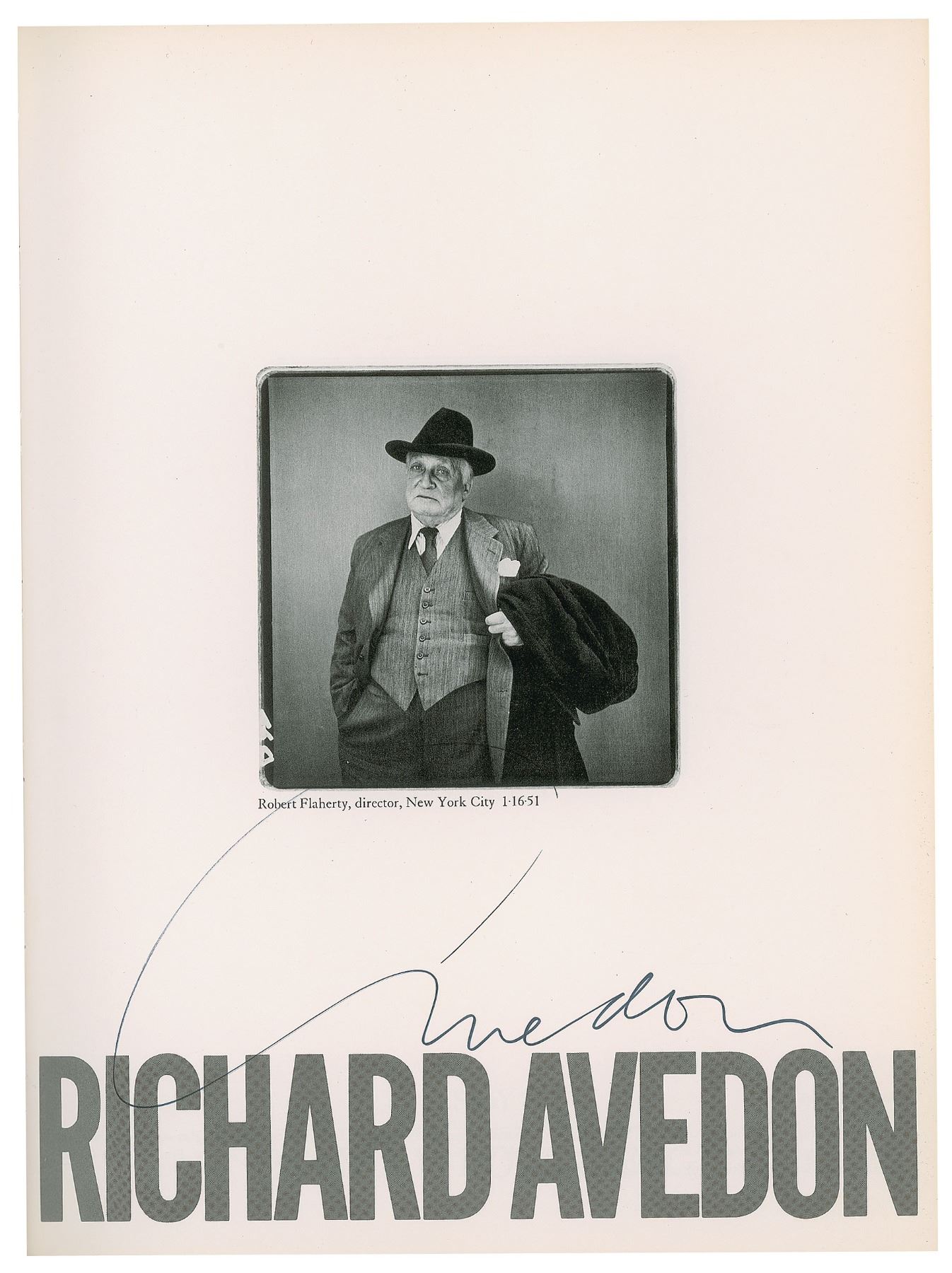 Two oversized first edition books signed by Avedon, both hardcovers with dust jackets, including: Portraits, published by Farrar, Straus & Giroux in 1976 signed on the author's title page in black felt tip, "Avedon"; and Evidence: 1944–1994, published by Random House in 1994, signed and inscribed on an opening two-page spread in black felt tip, "For Joe, Avedon, 1994." In overall fine condition, with scattered light scratches to the dust jacket for Evidence.