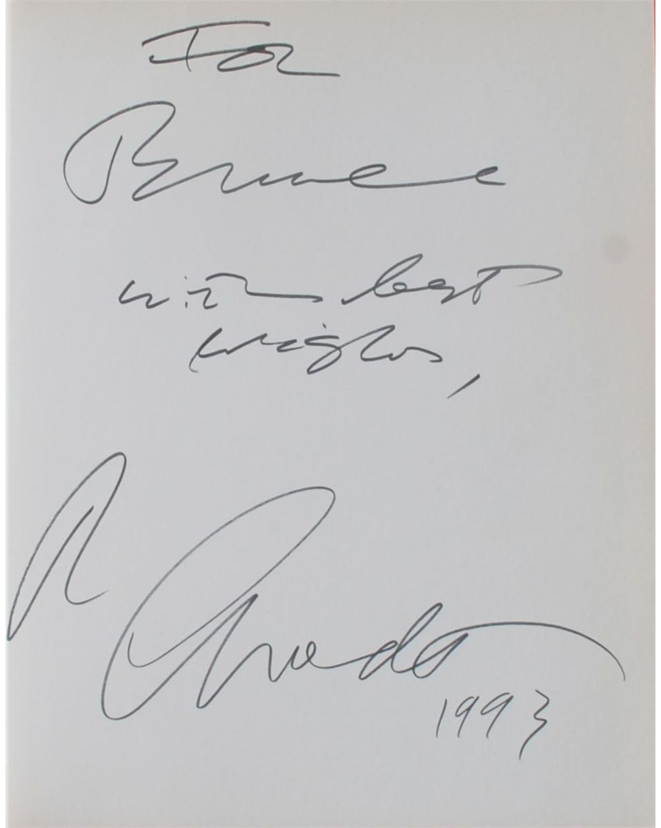 Highly acclaimed American fashion and portrait photographer (1923-2004). Signed book: An Autobiography. First edition, later printing. NY: Random House. Hardcover with dust jacket, 11.25 x 14 25, 1993 pages. Signed and inscribed on the first free end page, "For Bruce, with best wishes, R. Avedon 1993: In fine condition.