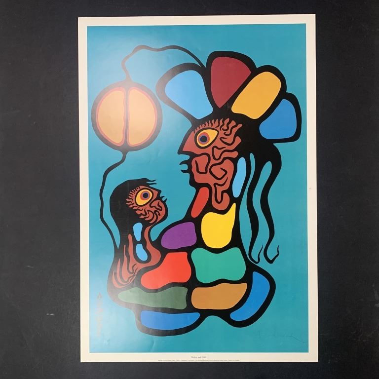 Richard Bedwood's "Mother and Child" limited edition print, signed lower right and numbered 5/500 lower left. This piece is of a mother holding her small child, done in the signature Native/Aboriginal style. This piece near excellent condition with a very minor wrinkle lower left corner.