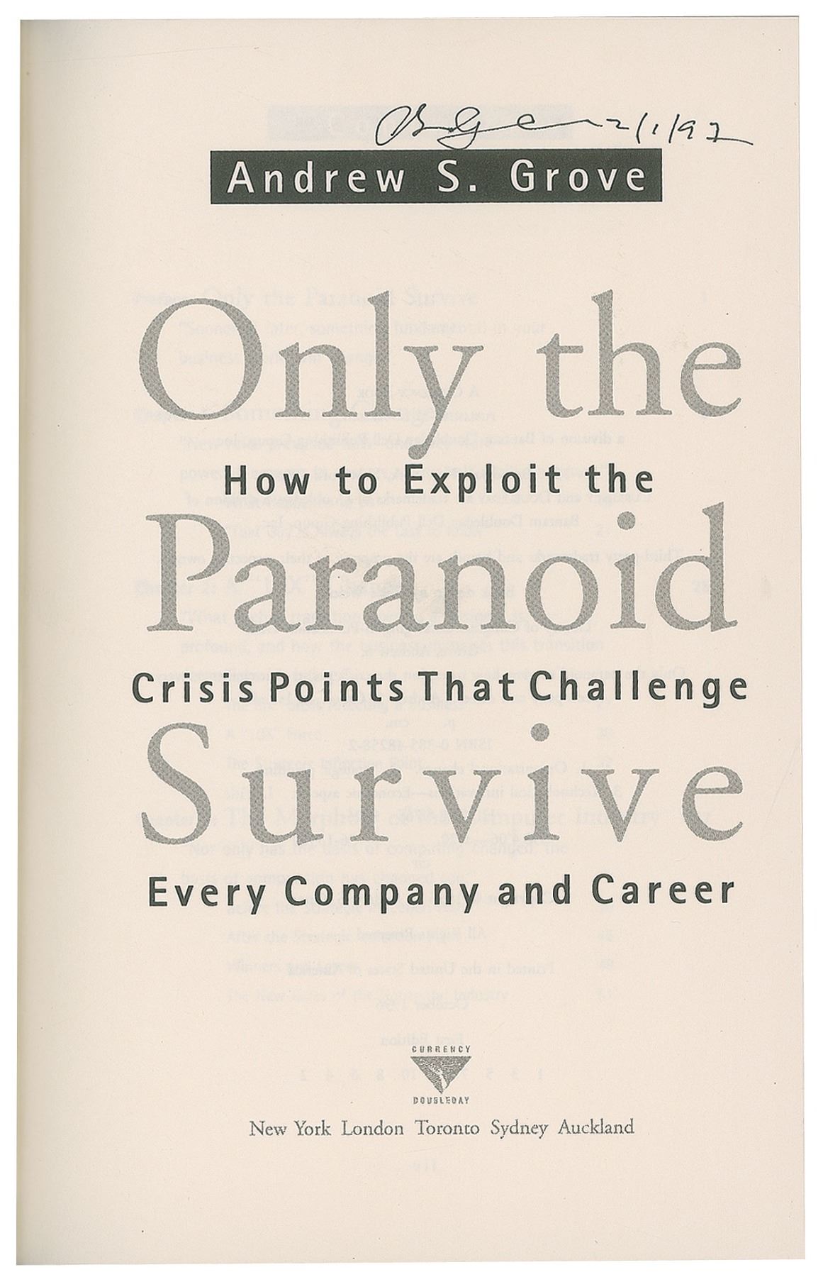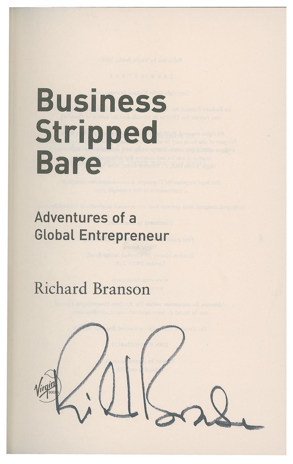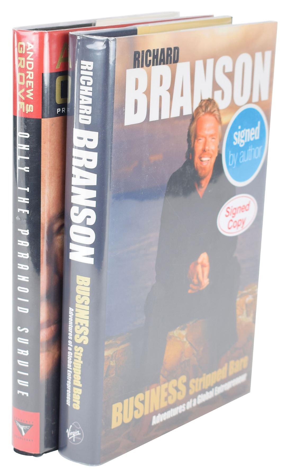 Two books: Business Stripped Bare, hardcover with dust jacket, signed on the title page in black felt tip by Richard Branson; and Only the Paranoid Survive, hardcover with dust jacket, signed on the title page in black felt tip by Andrew Grove. In fine condition.