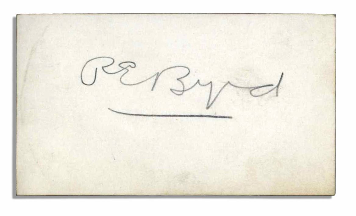 Arctic Explorer Richard Byrd Signature -- In Pencil: ''RE Byrd'' -- 3.5'' x 2'' -- Near Fine