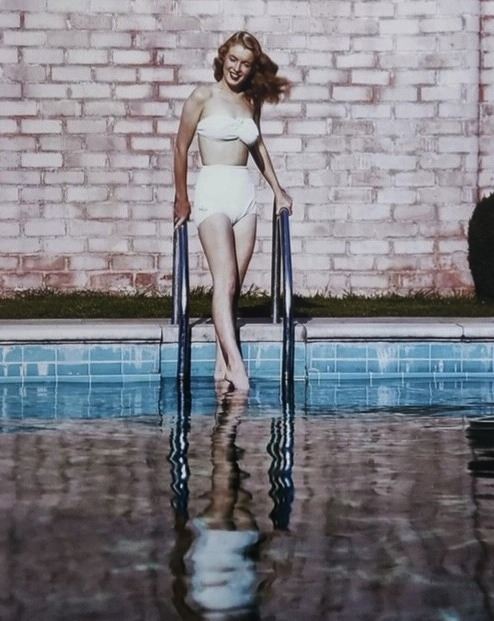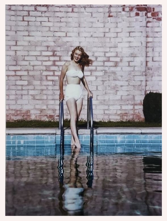 16x12 inch colour print of Marilyn Monroe in 1946. Copyright stamped on verso by photographer Richard Miller.