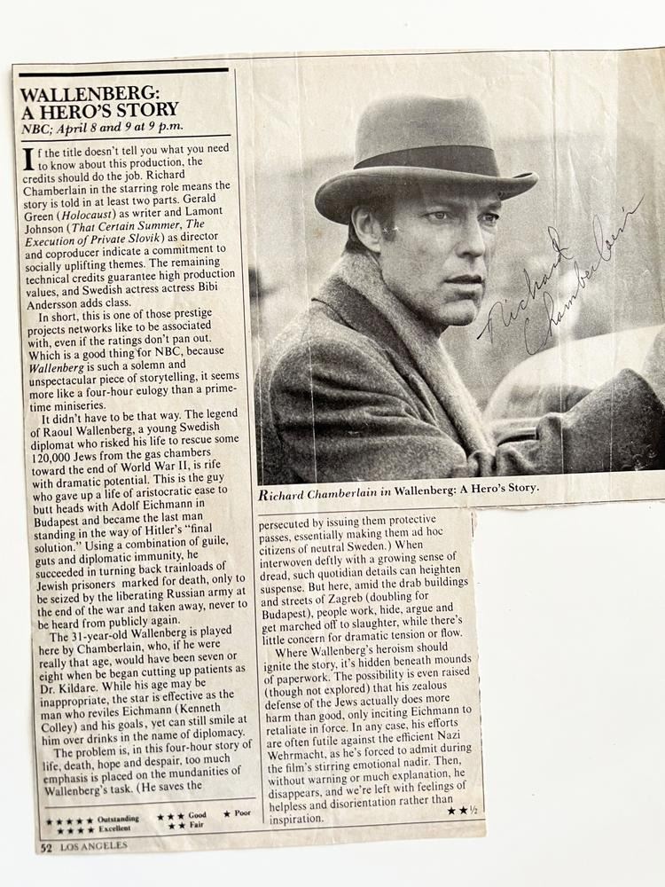 Richard Chamberlain signed newspaper clipping
