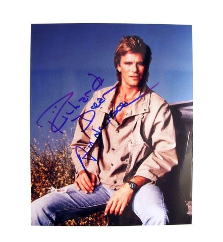 Richard Dean Anderson Stargate Autograph Photo - Richard Dean Anderson is best known for his starring roles in the many "Stargate" TV Series, and of course the clever "MacGyver". Now semi-retired, autographs of his are hard to come by. This is a publicity photo of Anderson personally signed by him. (Signed color photo is 8"x10").