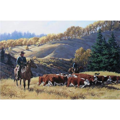 Canadian [1932-1991] MOVIN' ON; 1990 oil on canvas 24 x 36 in. (61 x 91.4 cm) signed, titled & dated Provenance: Gainsborough Galleries, Calgary
