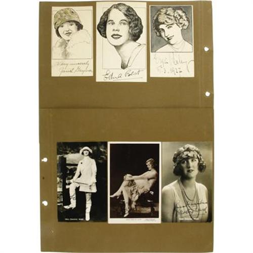 <B>Richard Dix and Others Signed Original Celebrity Sketches and Photos.</B></I> A selection of 15 small pen-and-ink sketches of various celebrities from the Golden Age of Hollywood, including Richard Dix, Betty Blythe, Janet Gaynor, Ken Maynard, and others, signed by their respective subjects and affixed to an 11.5" x 9.5" photo album page. Also included is a page with autographed vintage b&w photos of Dorothy Ward, Evelyn Laye, and Olive Borden affixed to it. The drawings are by artist Robert L. Whittington. In overall Very Fine condition with occasional instances of toning and/or soiling.<BR><BR><b>Shipping:</b> Flat Material, Small (<a target="_blank" href="http://www.heritageauctions.com/common/shipping.php">view shipping information</a>)