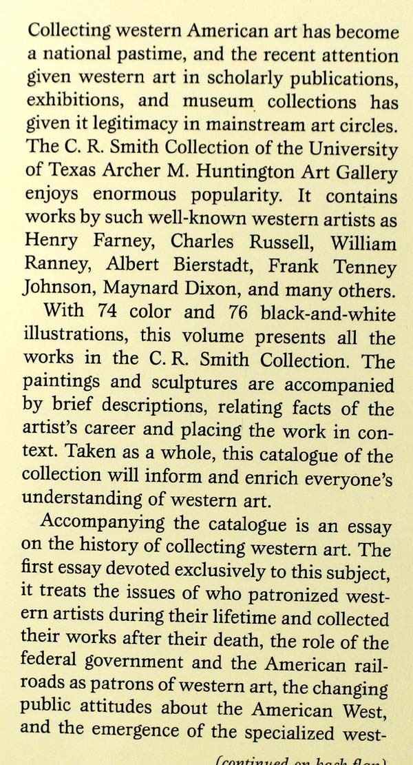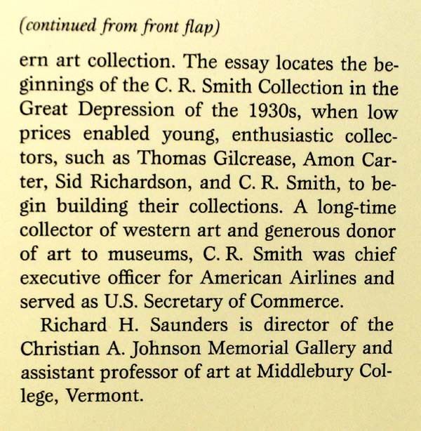 Richard H. Saunders: Collecting the West, The C.R. Smith Collection of Western American Art, FIRST EDITION, hardback book c. 1988 University of Texas Press, Austin, Published for The Archer M. Huntington Art Gallery, College of Fine Arts, The University of Texas at Austin, comes in original book jacket, like new condition