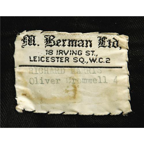 <B>Richard Harris Costume Tunic from "Cromwell."</B></I> A heavy costume tunic worn by Harris in the 1970 historical drama in which he played the title character. The tunic is in Very Fine condition with a Harris' name typed on the inner label and wear and tear added by the production's costume department; war is hell, after all, especially on one's wardrobe.<BR><BR><b>Shipping:</b> Clothing, Costumes & Jerseys (<a target="_blank" href="http://www.heritageauctions.com/common/shipping.php">view shipping information</a>)