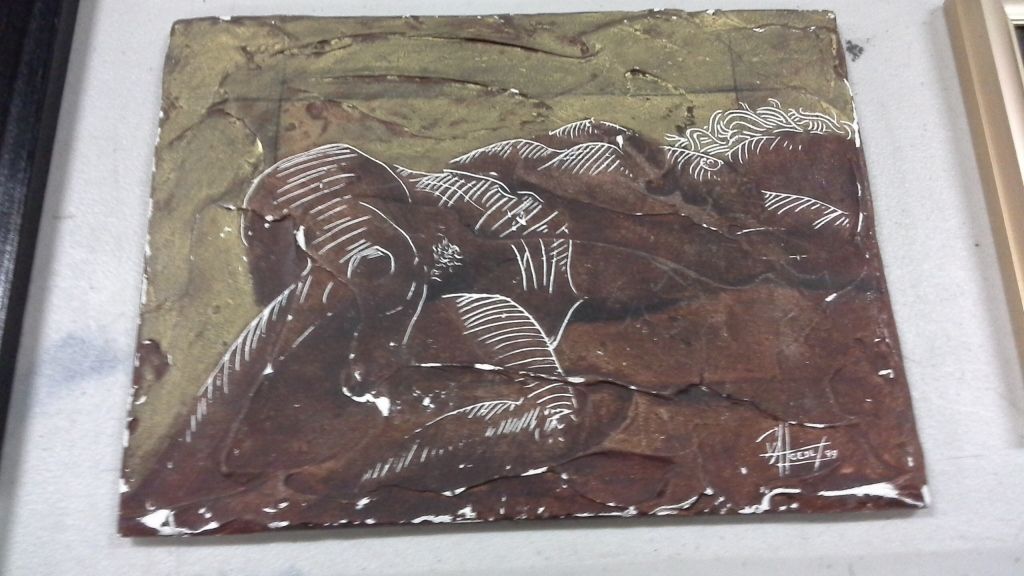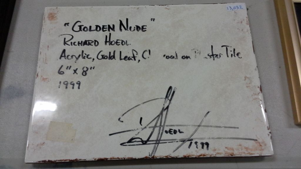 Richard Hoedl Acrylic, Gold Leaf Painting on Tile (6" X 8")