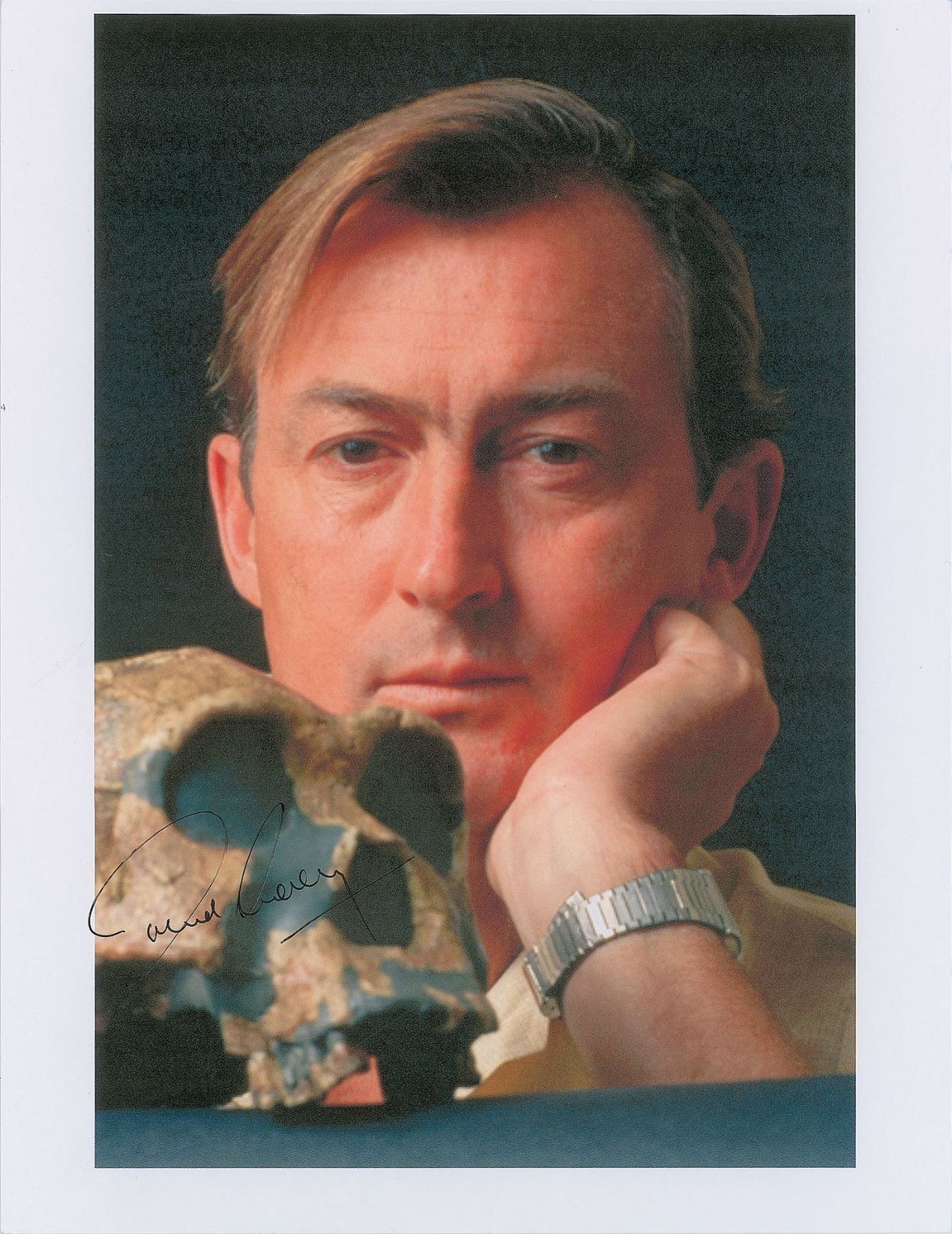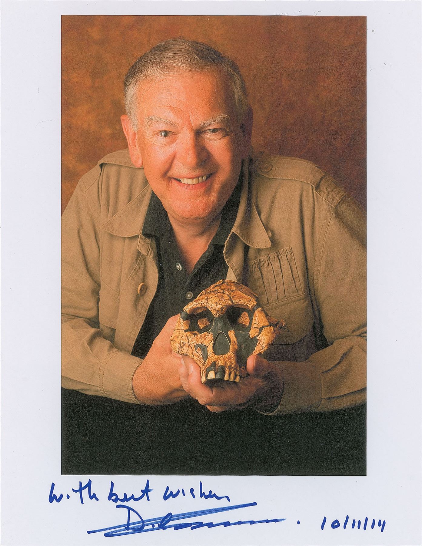 Two color 8.5 x 11 laserprint photos, one showing Kenyan paleoanthropologist Richard Leakey, who has signed in black ink, "Richard Leakey," and the other of American paleoanthropologist Donald Johanson, signed in blue felt tip, "with best wishes, D. Johanson, 10/11/14." In overall very fine condition.