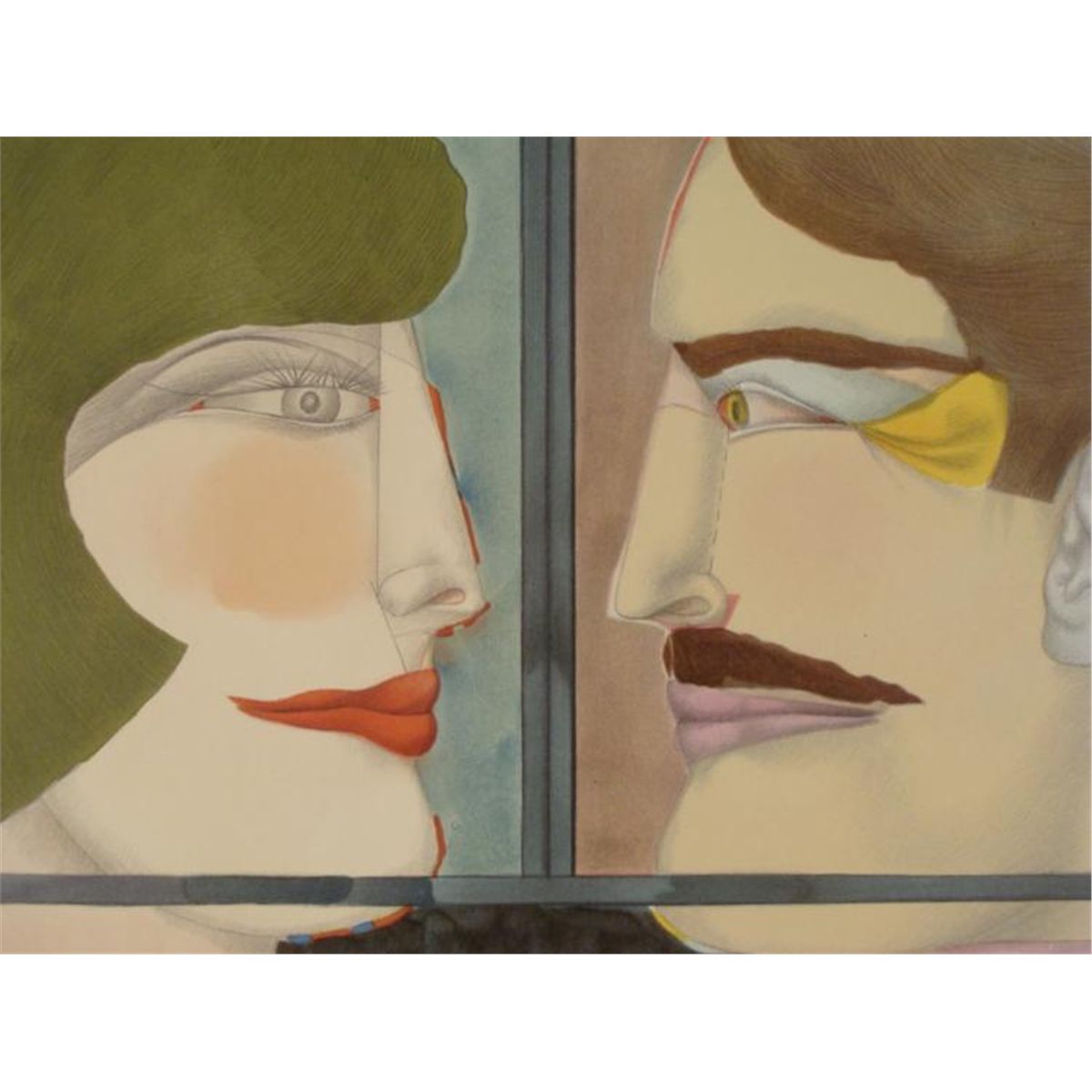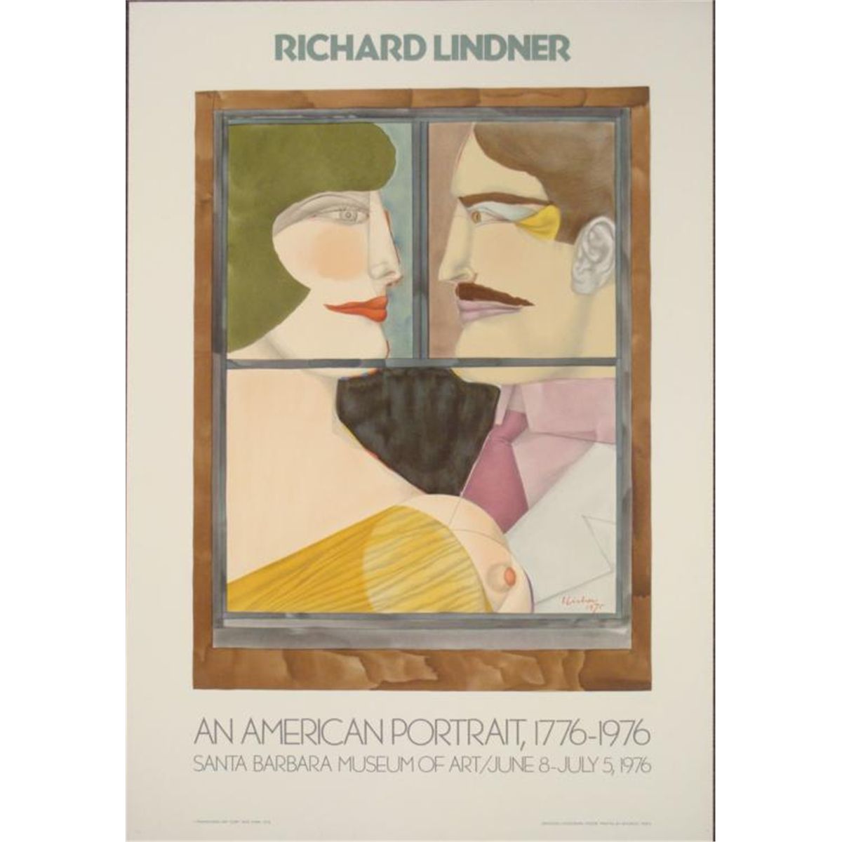 This exhibition print was produced for a retrospective of the artist's work at the Santa Barabara Museum of Art.Artist: Richard LindnerTitle: An American PortraitImage Size: '21 3/4 x '16 1/2 inches.Paper Size: 30 1/2 x 21 1/4 inches.Notes: LithographBiography * Richard Lindner (German, b. 1901 - 1978) fled Nazi Germany and came to New York, where he worked as an illustrator for magazines such as Vogue and Harper's Bazaar. By the early 1950's he had begun painting full time, developing a style critics called "mechanistic cubism." His art can now be seen at some of the world's finest museums, including the Smithsonian, the Hirshhorn Museum and Sculpture Garden, and the Tate Gallery in London.