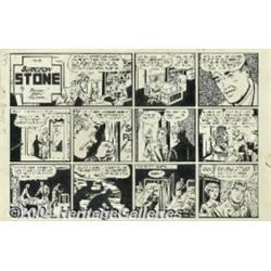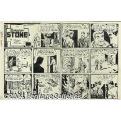 Richard Martin Fletcher - Original Comic Strip Art for Surgeon Stone, Group of Eight Sundays (Chicago Tribune, 1950). Dick Fletcher was a cartoonist known primarily for his work on DC's Gangbusters comic book. But from 1946 until 1951, he drew this largely forgotten strip about the world of health care; it fits in well with other medical-themed strips such as Dr. Bobbs, Rex Morgan, M.D., and TV tie-ins like "Ben Casey" and "Dr. Kildare." Offered here are eight Sunday strips from 3-12-50 to 5-14-50, all in excellent condition, measuring approximately 23" x 14.5" each. Each strip displays some editorial notations in the margins, but these do not affect the art in any way. This is a great "instant collection" of this classic strip. Important notice: Heritage usually auctions material at the rate of 200-250 lots per hour. On some occasions eBay Live bid software or the Internet may not be able to keep up with the pace of the auction. We recommend placing a realistic absentee bid now as insurance to avoid disappointment. Occasionally the auctioneer may eliminate or reject an eBay Live bid, and the auctioneer may also reopen a lot after the close of the eBay live bidding (usually because we missed an audience bid), and may reject your bid even if it shows you as the winning bidder. By bidding via eBay Live, you agree that Heritage may award the lot to another bidder at its sole discretion under the circumstances described above or any other reasonable circumstances. Since eBay bids are not shown to us until we open the lot on the floor, we treat those bids just like floor bids. In most cases the floor responds before the eBay bid is presented to us, due to Internet lag time, so for consistency we have made it a policy that floor bids are always considered first over tie eBay live bids. Also please note that all Heritage lots purchased through eBay Live carry a 20% Buyer's Premium. Please make sure you read the Terms and Conditions before you bid.