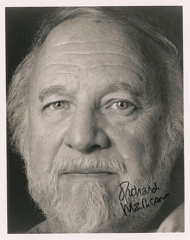 Author and screenwriter (1926–2013) best known for his novel I Am Legend. Satin-finish 8 x 10 close-up photo of Matheson, signed in black felt tip. In fine condition, with a paperclip impression to the upper left.