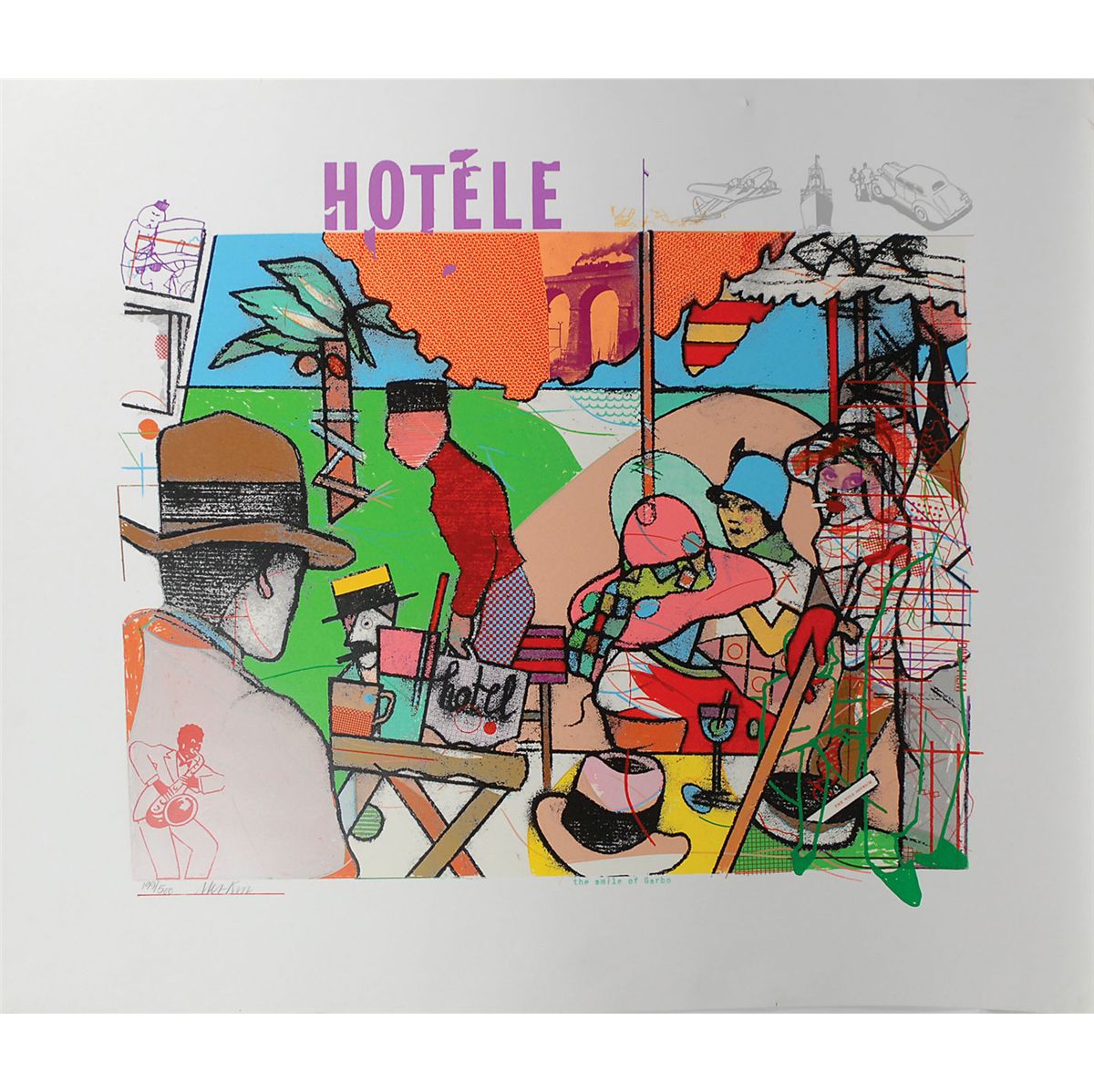 Very nice and bright color limited edition 41 x 35 print entitled The Smile of Garbo, numbered 199/500, signed in the lower border in pencil, “Merkin.” In fine condition.