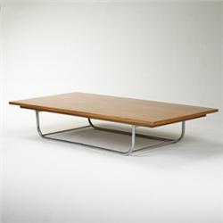 Richard Neutra Camel table USA, c. 1945 maple, chrome plated steel 37"w x 74"d x 28"h Neutra created several variations of the Camel table from the mid 1940s through the late 1950s. The design of the Camel Table is simple and appropriate to the flexible lifestyle in America at the time. The table is versatile and can easily converted from a dining table to a coffee table, allowing for single spaces to be used for many purposes.