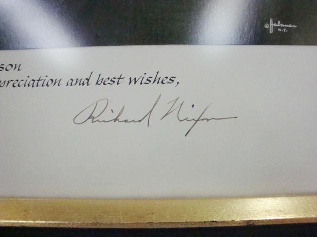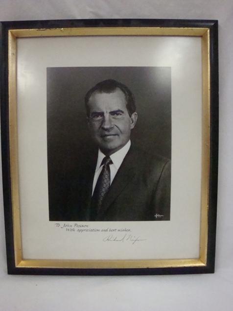 Authentic signed 8x10 photo of Richard Nixon to one of the volunteers, personalized.