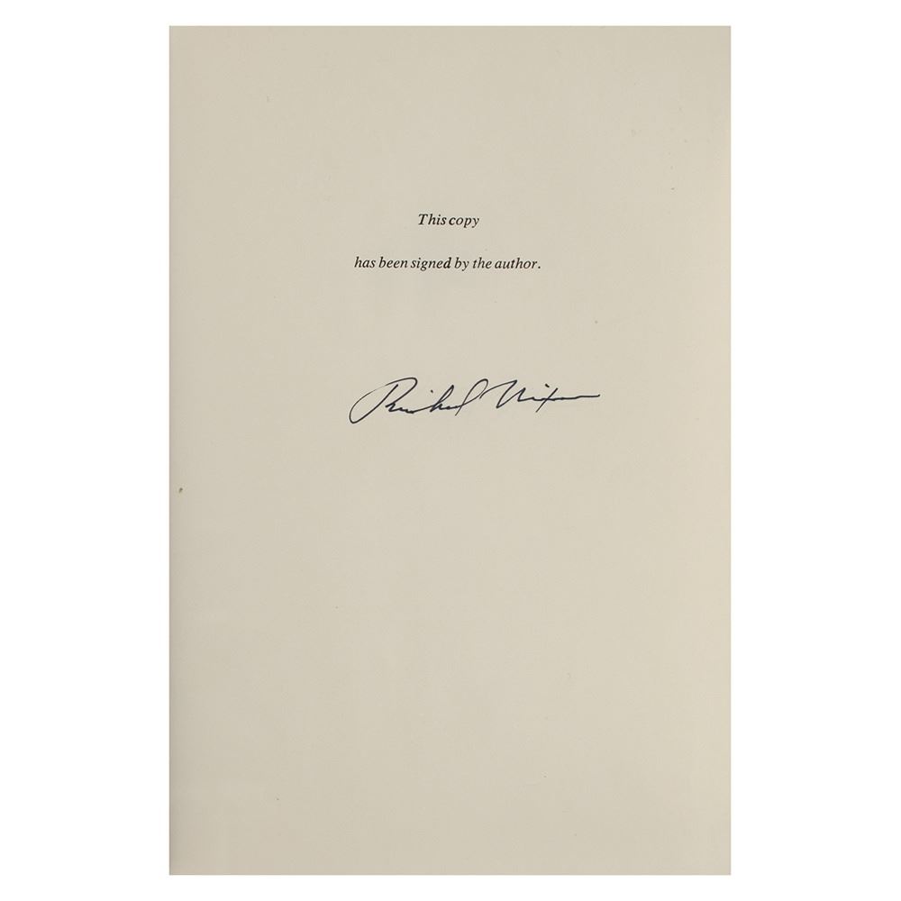 Signed book: The Memoirs of Richard Nixon. First edition. NY: Grosset & Dunlap, 1978. Clothbound hardcover with slipcase, 7.25 x 10, 1120 pages. Signed on the colophon in black felt tip by Richard Nixon. In fine condition, with sunning to spine and mild soiling to slipcase.