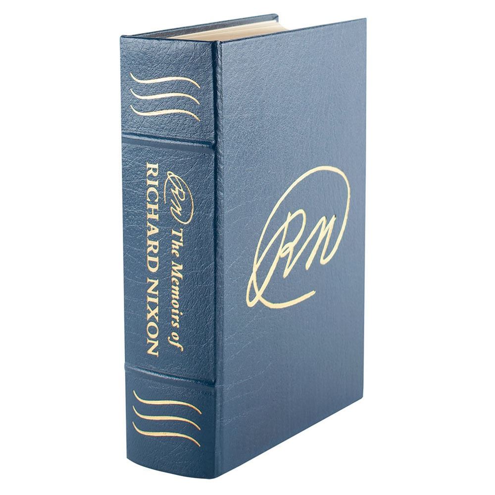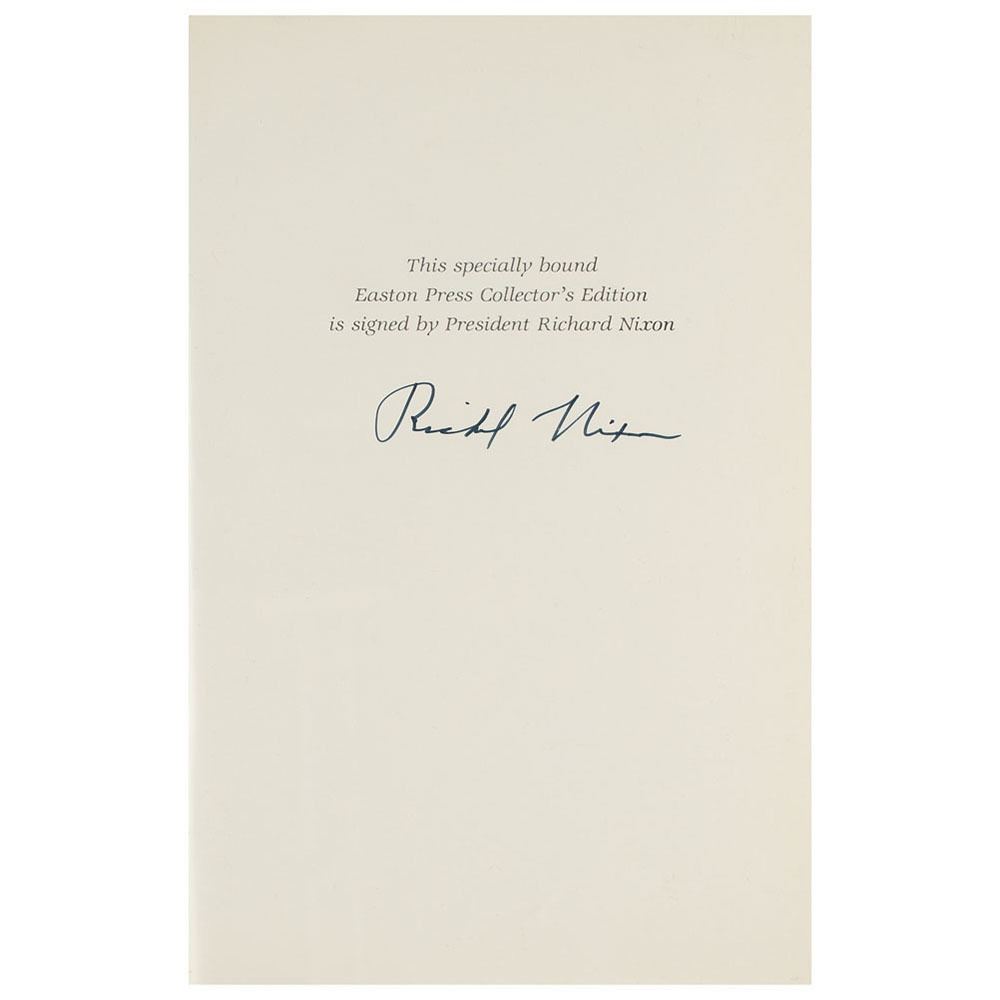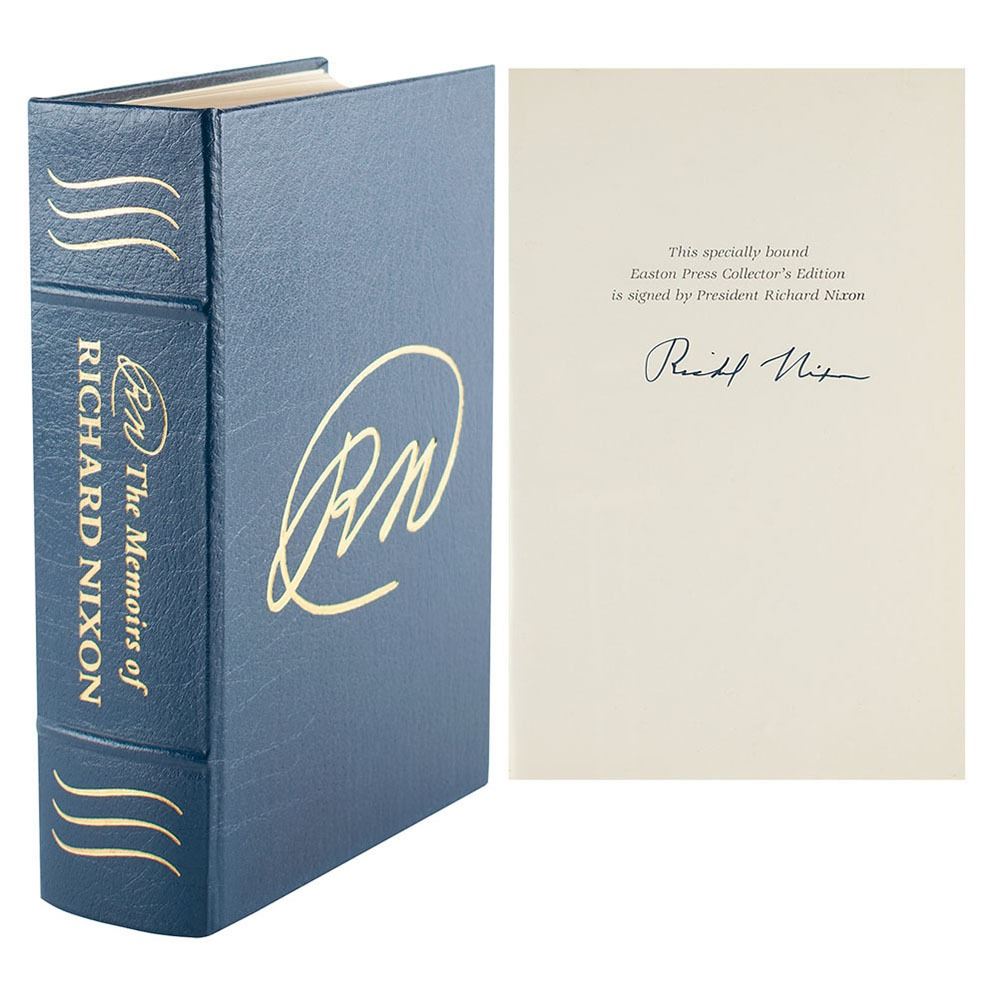 Signed book: RN: The Memoirs of Richard Nixon. Collector's edition. Norwalk, CT: Easton Press, 1988. Leather-bound hardcover, 6.5 x 9.5, 1118 pages. Signed in black ink on a specially printed prefatory page by Richard Nixon. In fine condition, with prior owner's bookplate to front pastedown.