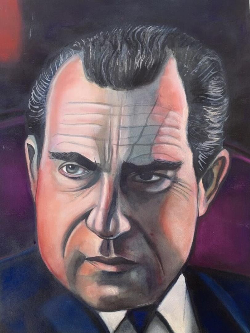 A pastel & watercolor portrait of Richard M. Nixon,the only US President to resign his Office. 24x18" on deckled fine art paper, by Anonymous