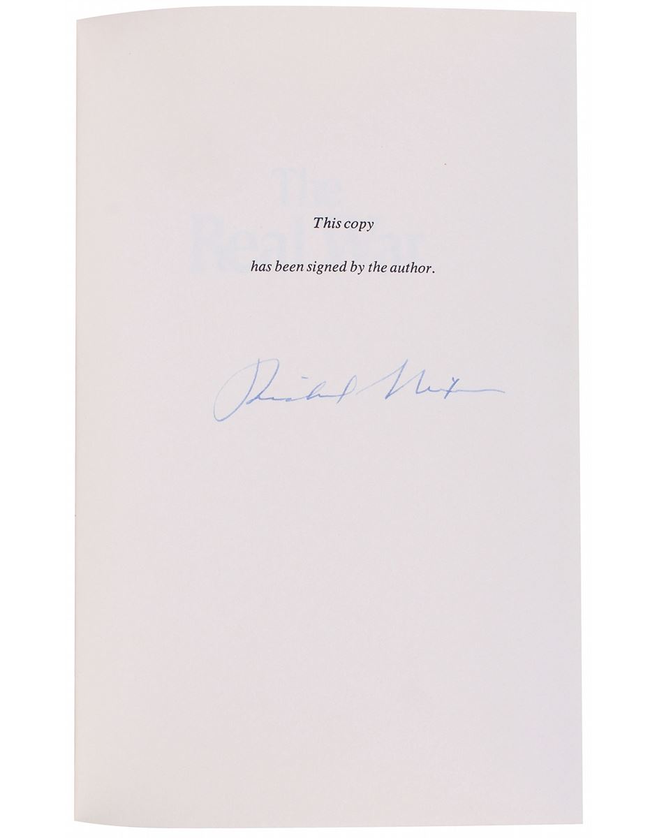 Signed book: The Real War. First edition, NY: Warner Books, 1980. Hardcover with slipcase, 6.25 x 9.25, 341 pages. Signed on the designated page in blue ballpoint. In fine condition.