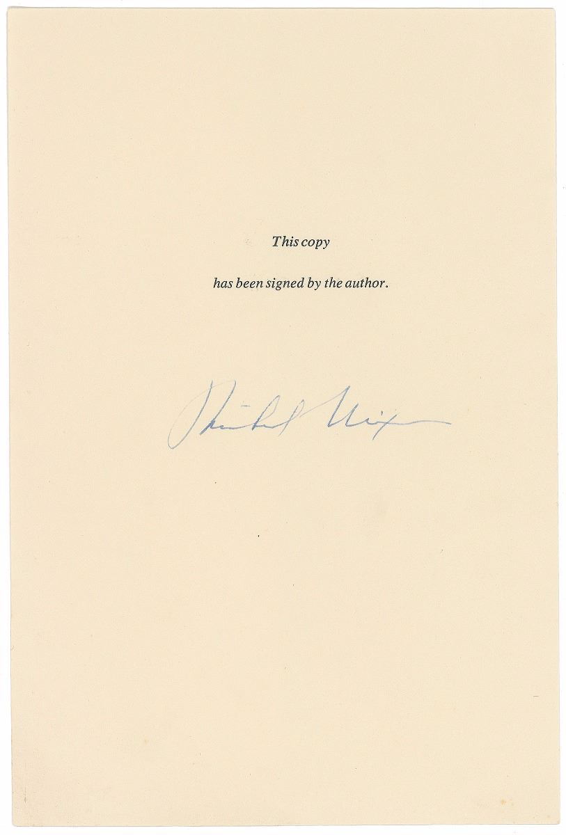 Ink signature, “Richard Nixon,” on an off-white 6.25 x 9.25 book page. In fine condition.