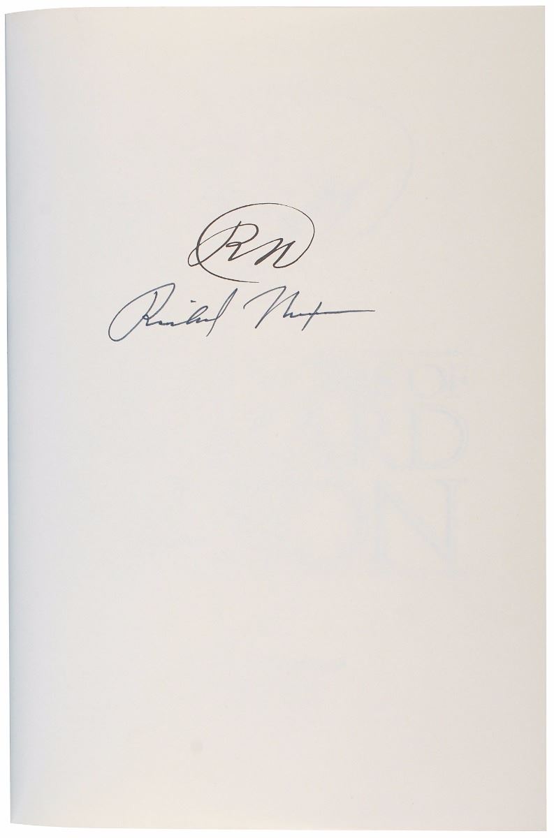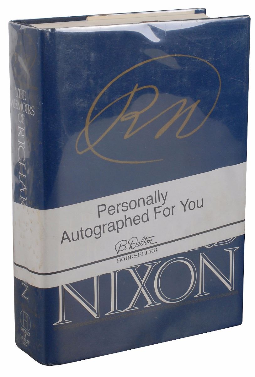 Signed book: The Memoirs of Richard Nixon. Later printing. NY: Grosset & Dunlap, 1978. Hardcover with dust jacket, 6.75 x 9.5, 1120 pages. Signed on the half-title page in black felt tip. In fine condition, with trivial spotting to bottom textblock edge.