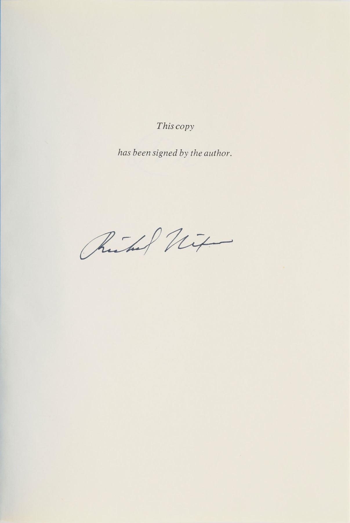 Signed book: The Memoirs of Richard Nixon. First edition. NY: Grosset & Dunlap, 1978. Clothbound hardcover with slipcase, 7.25 x 10, 1120 pages. Signed on the colophon in black ink by Nixon. In fine condition, with sunning to the spine.