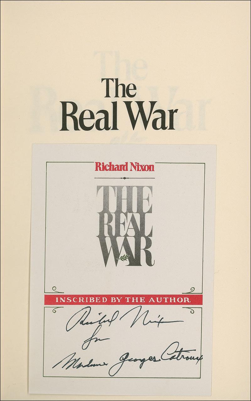 Signed book: The Real War. First edition, first printing. NY: Warner Books, 1980. Hardcover with dustjacket, 6.25 x 9.25, 341 pages. Signed and inscribed on a bookplate affixed to the half-title page. In fine condition, with some scattered light wear and toning to dustjacket. Pre-certified John Reznikoff/PSA/DNA and RRAuction COA.