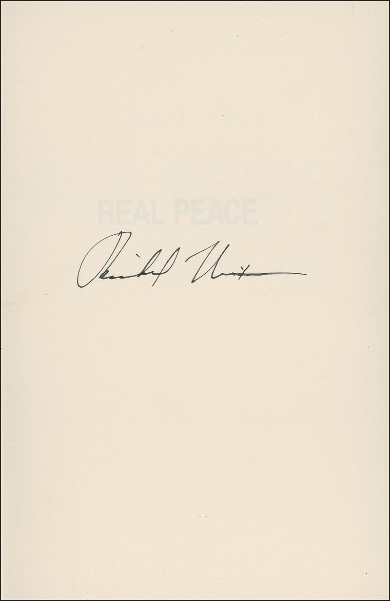 Signed book: Real Peace. Private edition, printed before the first trade (store) edition. NY, 1983. Hardcover with dustjacket, 5.75 x 8.5, 106 pages. Signed on the first free end page in black ink. In fine condition. Pre-certified John Reznikoff/PSA/DNA and RRAuction COA.