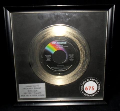 Richard Pryor "Car Wash" Record - A silver 45 single presented to Richard Pryor for the single "Car Wash" from MCA and Rose Royce. From the Dick Clark Auction of Rock and Roll. Framed in Plexiglas.  11" x 11"