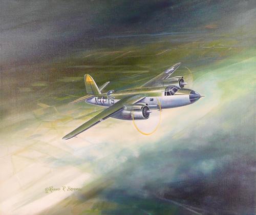 Richard R. Broome (20th Cent) Oil on Canvas Bomber Signed lower left 1986 16" x 20"