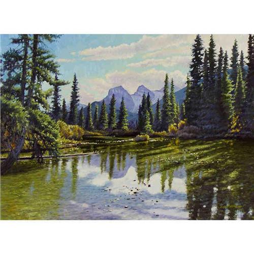 [Canadian b. 1950] UNTITLED (THREE SISTERS AND BOW RIVER) Oil on canvas 18 x 24 in. Signed.