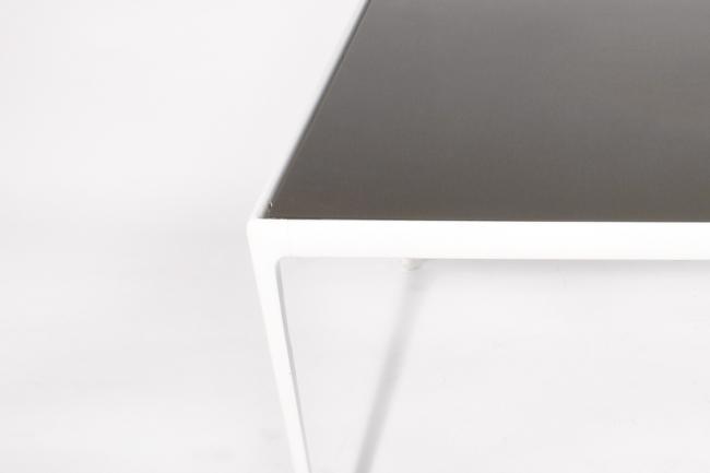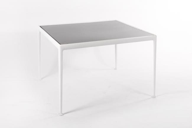 26h x 38w x 38d inches, white painted iron base, black metal top, original very good condition