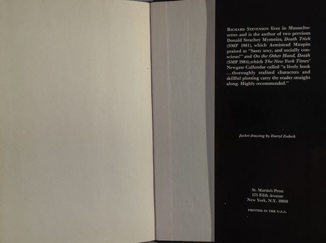 Ice Blues (St. Martin's Press, 1986) first edition hard cover book, signed by author Richard Stevenson. 212 pages. ISBN: 0-312-40379-8.