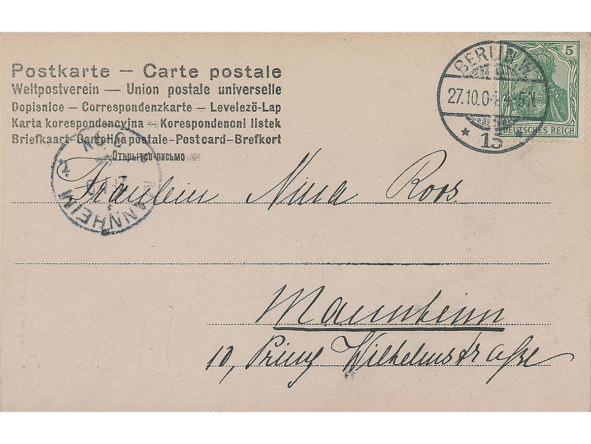 Uncommon matte-finish 3.5 x 5.5 postcard photo of the composer in an ornately carved chair, crisply signed in the lower border in black ink, “Dr. Richard Strauss.” Postmarked on the reverse Berlin, October 27, 1904. In fine condition, with some trivial surface marks.