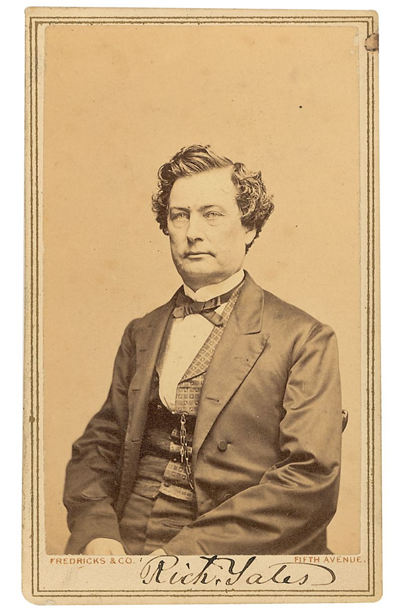 Governor of Illinois during the Civil War who is often considered the greatest war governor of the period (1815–1873). Sharp original 2.25 x 4 carte-de-visite portrait of Yates, signed in the lower border in black ink, “Rich. Yates.” Published by Fredricks & Co. of New York. In fine condition, with a tiny circular stain to the upper right edge.