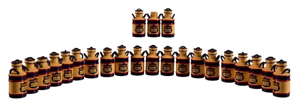 (23) Richfield Gasoline miniature gas cans 1 1/4" Dia. 2 1/2" Tall. (1) is missing it's lid.
