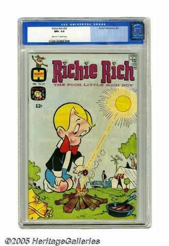<B>Richie Rich #54 (Harvey, 1967) CGC NM+ 9.6 Off-white to white pages.</B></I> Overstreet 2005 NM- 9.2 value = $70. CGC census 6/05: 2 in 9.6, none higher.