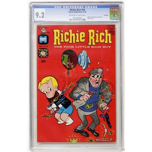 <B>Richie Rich #69 File Copy (Harvey, 1968) CGC NM- 9.2 Off-white to white pages.</B></I> Contains a 1968 calendar. Little Dot and Little Lotta stories. Overstreet 2007 NM- 9.2 value = $55. CGC census 10/07: 1 in 9.2, 1 higher.<BR><BR><b>Shipping:</b> Comics - Slabbed (certified) (<a target="_blank" href="http://www.heritageauctions.com/common/shipping.php">view shipping information</a>)