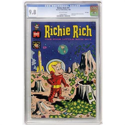 <B>Richie Rich #71 File Copy (Harvey, 1968) CGC NM/MT 9.8 Off-white pages.</B></I> Overstreet 2007 NM- 9.2 value = $55. CGC census 10/07: 1 in 9.8, none higher.<BR><BR><b>Shipping:</b> Comics - Slabbed (certified) (<a target="_blank" href="http://www.heritageauctions.com/common/shipping.php">view shipping information</a>)