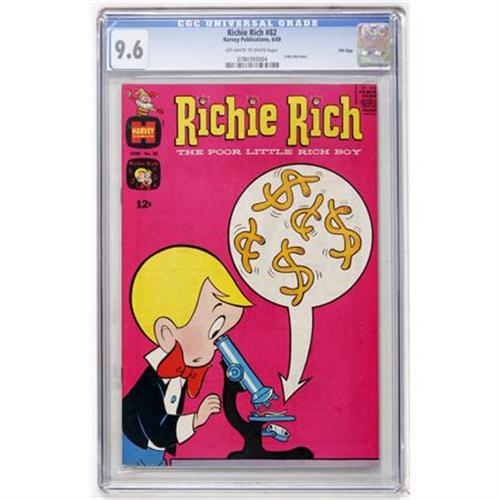 <B>Richie Rich #82 File Copy (Harvey, 1969) CGC NM+ 9.6 Off-white to white pages.</B></I> Little Dot backup story. Overstreet 2007 NM- 9.2 value = $35. CGC census 12/07: 1 in 9.6, none higher.<BR><BR><b>Shipping:</b> Comics - Slabbed (certified) (<a target="_blank" href="http://www.heritageauctions.com/common/shipping.php">view shipping information</a>)
