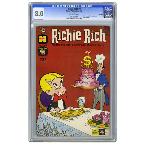 <B>Richie Rich #9 File Copy (Harvey, 1962) CGC VF 8.0 Off-white pages.</B></I> Little Dot and Little Lotta also appear. Overstreet 2006 VF 8.0 value = $167. CGC census 2/06: 1 in 8.0, 4 higher.