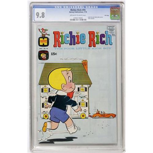 <B>Richie Rich #95 File Copy (Harvey, 1970) CGC NM/MT 9.8 Off-white to white pages.</B></I> Contains a 1970 calendar. Little Dot and Little Lotta stories. Overstreet 2007 NM- 9.2 value = $35. CGC census 10/07: 1 in 9.8, none higher.<BR><BR><b>Shipping:</b> Comics - Slabbed (certified) (<a target="_blank" href="http://www.heritageauctions.com/common/shipping.php">view shipping information</a>)
