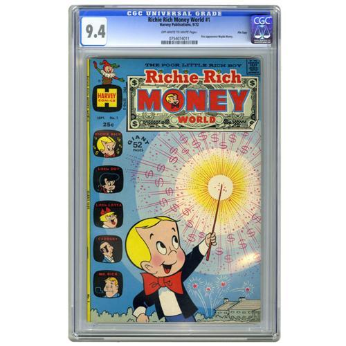 <B>Richie Rich Money World #1 File Copy (Harvey, 1972) CGC NM 9.4 Off-white to white pages.</B></I> First appearance of Mayda Munny. Overstreet 2006 NM- 9.2 value = $75. CGC census 2/06: 7 in 9.4, 2 higher.